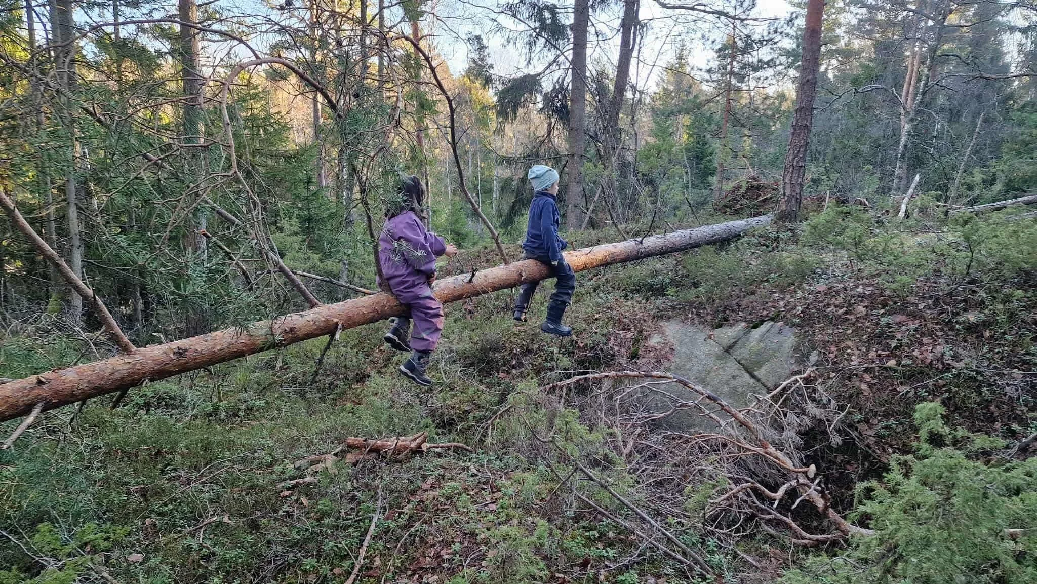 I balanse i skogen - litt skummelt og veldig gøy.